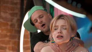 Voluptuous pale slut enjoys some wild black dick riding on a sofa