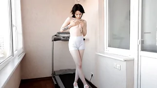Tall blonde Linn Lamborghini puts on a solo show for us